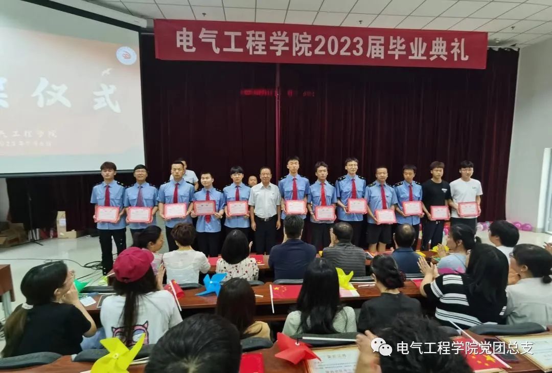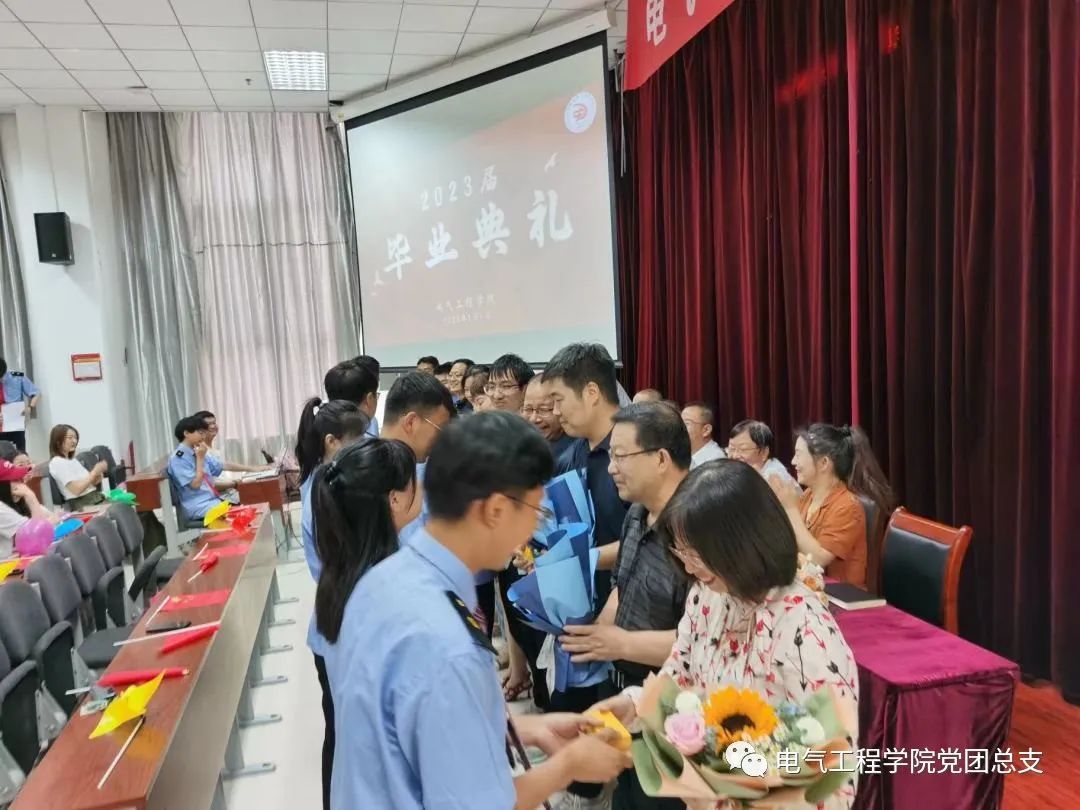 7月6日上午,电气工程学院2023届学生毕业典礼在鸭脖阶梯教室隆重举行,电气工程学院党总支书记喻朝晖、院长王公强、副院长宋永兴、院办主任董燕出席典礼,教师代表、全体辅导员班主任及2023届毕业生100余人参加典礼,典礼由学工办主任马纪主持。在庄严的国歌声中,毕业典礼正式拉开帷幕。