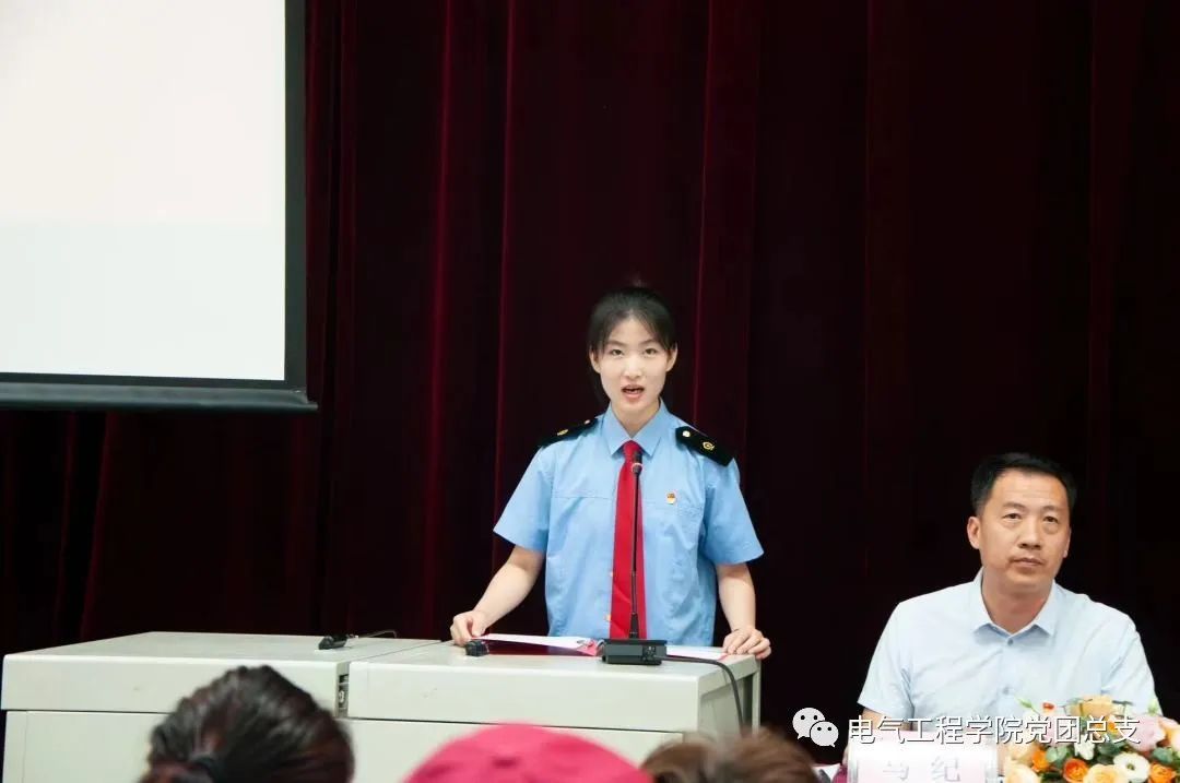 2023届城轨供电专业优秀毕业生朱雅楠代表全体毕业生向学院及老师们表达了诚挚的感谢,她表示,同学们今后会永远牢记“尚德、守则、强能、笃行”的校训,牢记老师们的教导和嘱托,努力奋斗、追求卓越,在不同的岗位上展现电气学子的风采。