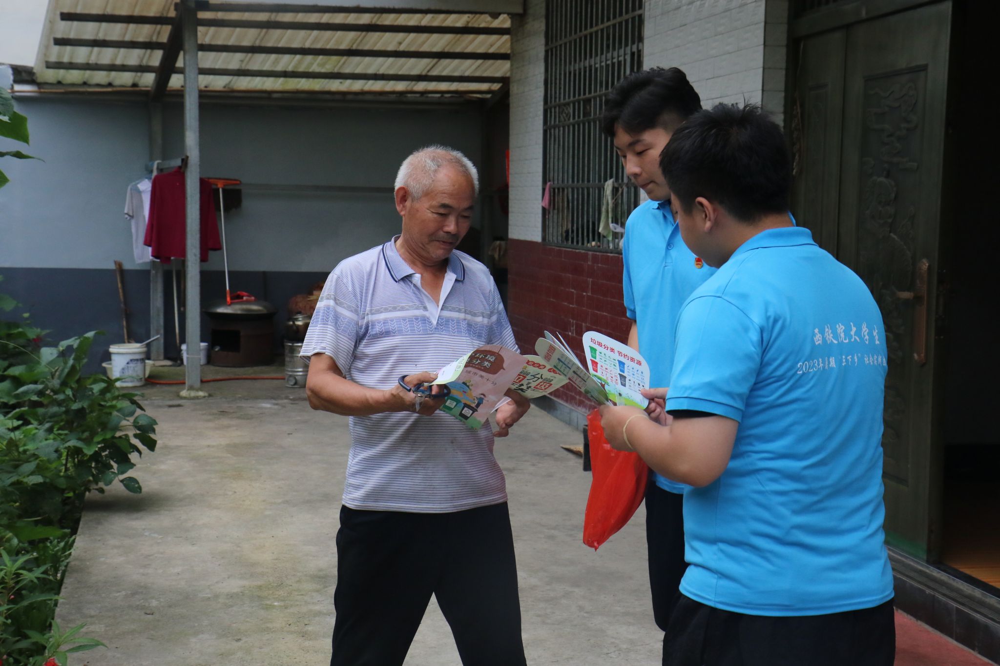 8月10日,团队成员在巴山镇活水社区开展公益宣传,走访每一户人家,并将印有“电信诈骗”“防震减灾”“垃圾分类”知识的宣传彩页和小扇子发送给居民,同时在社区公共区域悬挂了宣传横幅,进一步扩大宣传力度。