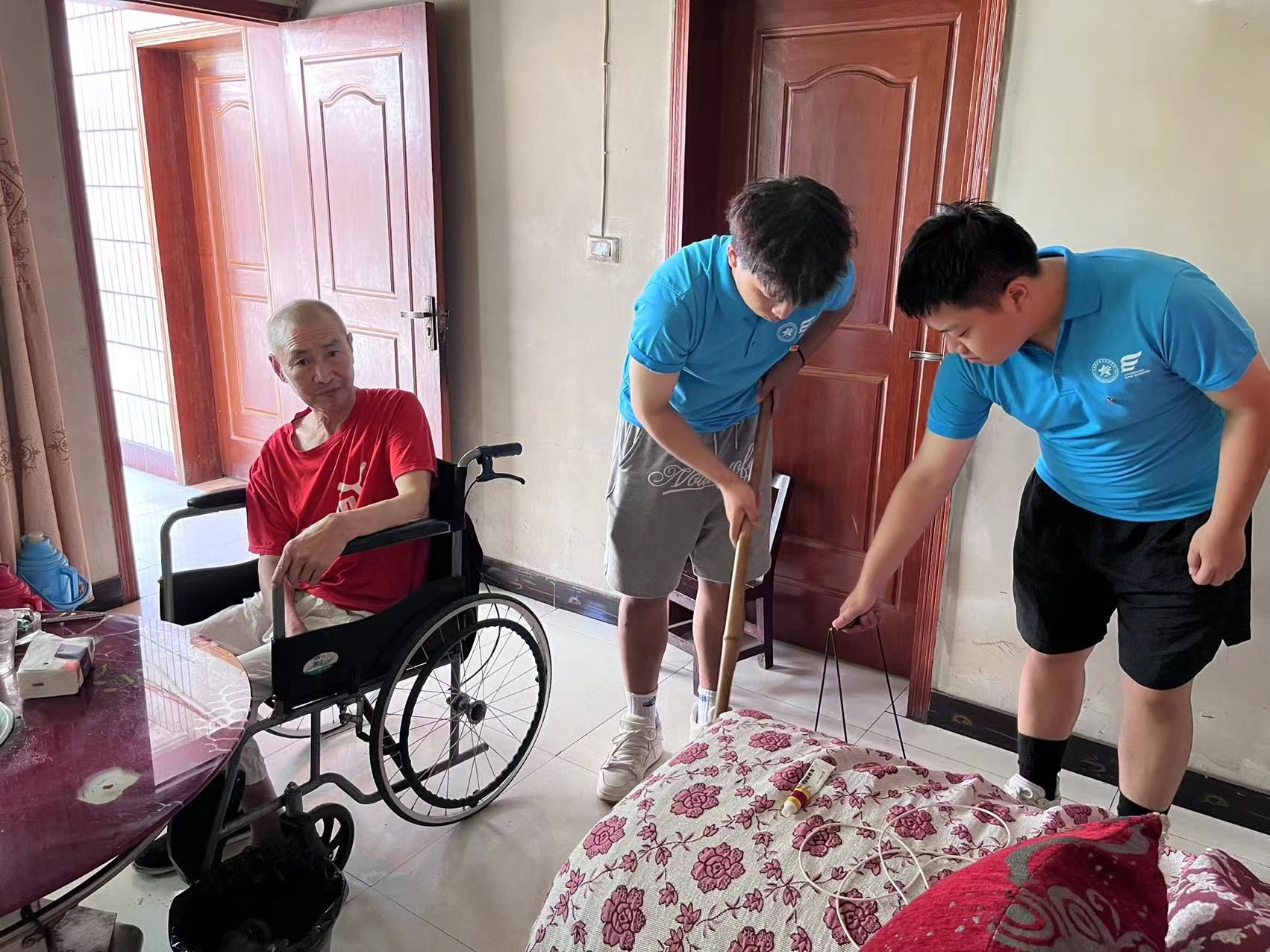 8月11日,团队成员看望社区留守老人,并送上慰问品。团队成员在空巢老人家中开展志愿服务,帮助老人打扫卫生,收拾垃圾,整理柴火,与老人聊天,陪老人下棋,丰富留守老人生活,让老人感受到社会的关心和关爱。