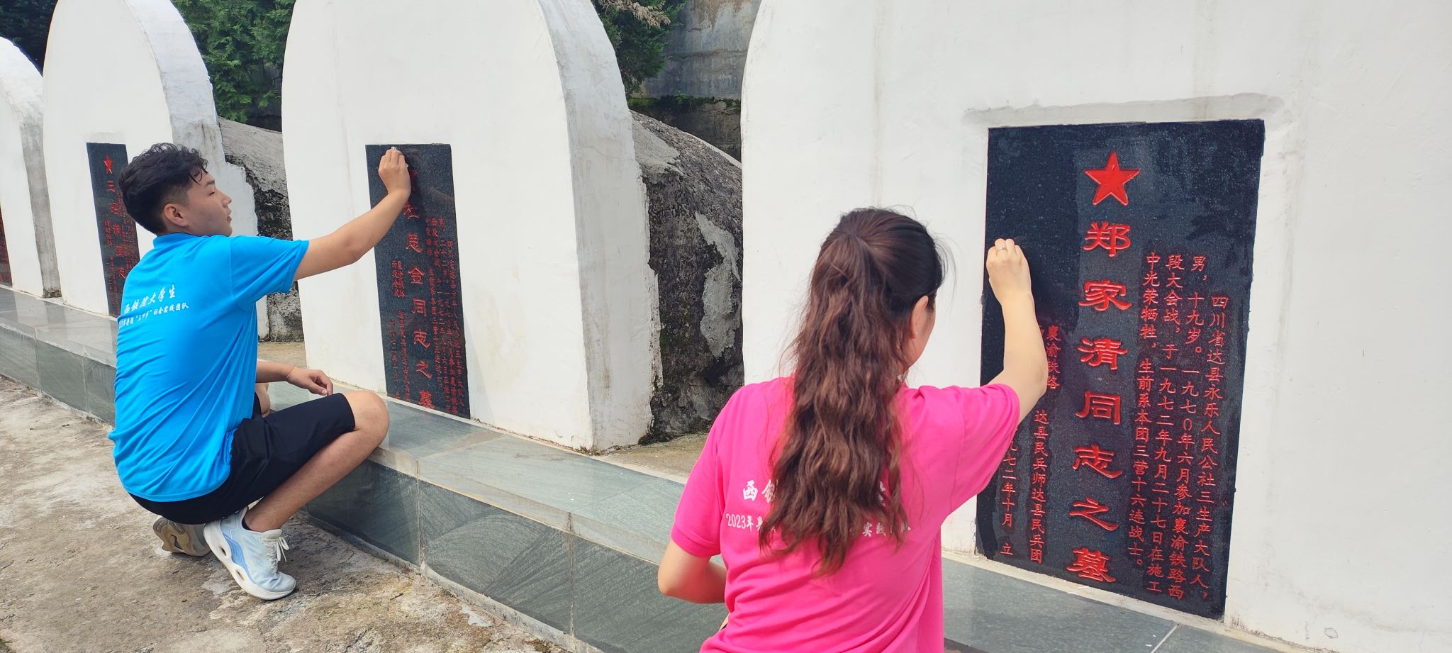 在烈士陵园,团队成员为烈士擦拭墓碑、清除陵园杂草。当看到修建襄渝线牺牲的英雄中,最小年仅18岁时,团队成员不禁落泪。同样的年纪,他们将青春与热血抛洒在铁路大动脉上,献出了宝贵的生命。这种不怕牺牲、不畏艰苦、勇于奋斗的精神,将永远激励着团队每一个成员。作为新一代的青年,应牢记职责与使命,立足自身的岗位,投身在中华民族的伟大复兴的滚滚洪流中,助力祖国的建设,实现人生价值。
