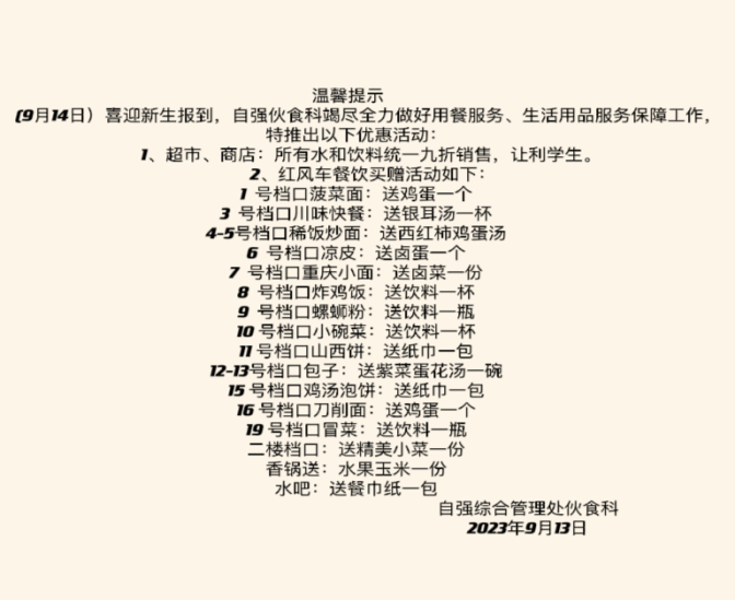 为确保新学期开学工作安全、有序进行,自强综合管理处各科室严格按照学校统一安排和部署,提前谋划、精心准备为自强校区1612名新同学们顺利开启大学生活提供热情周到、高效优质的后勤保障服务。