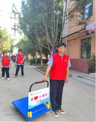 校门口迎接新生服务是映入新生眼帘的第一张名片。为解决新生行李多,校内搬运不方便问题,自强综合管理处办公室准备了20辆“爱心小推车”帮新生转运行李,,确保新生入校后的行李转运工作无滞留、无积压、运力无空缺,成为本年度迎新工作的一道靓丽风景线,让新生一入校就能感受到贴心、暖心、细心的后勤服务。