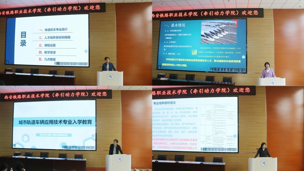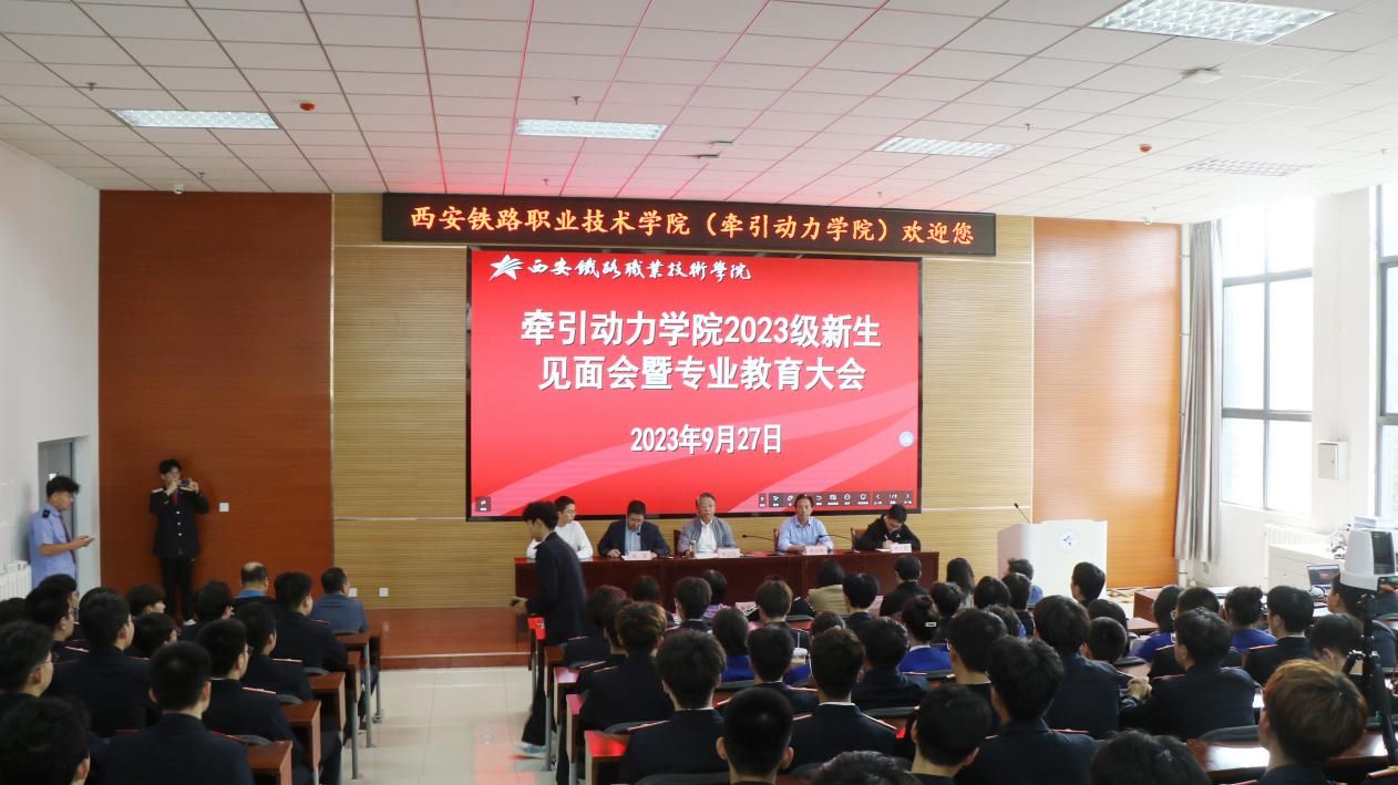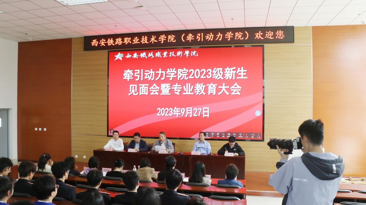 为帮助2023级新生进一步了解所学专业内容和特点,培养学习专业的兴趣,掌握科学的方法,合理制定今后的学习计划,尽快适应新环境、新生活。9月27日下午,牵引动力学院在一楼阶梯教室采用现场直播的方式对2023级17个班开展了新生专业教育。牵引动力学院院长李益民、党总支书记李贞伟、办公室主任肖贤、学工办主任陈广勇、办公室副主任孙正华、铁道机车运用与维护专业带头人崔晶、铁道机车运用与维护教研室主任王娟、城市轨道车辆应用技术专业带头人马仲智、城市轨道车辆应用技术教研室主任柴贵兰、副主任潘俞如、动车组驾驶与维修专业带头人李冰毅、动车组驾驶与维修教研室主任朱亚男、铁道机车车辆制造与维护专业带头人刘宏利、铁道机车车辆制造与维护教研室主任朱慧勇、2023级主管辅导员刘文峰参与了此次专业教育活动。办公室主任肖贤主持专业教育活动。