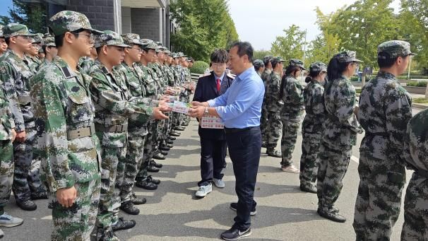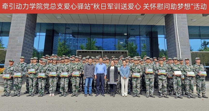 雨径绿芜合,霜园红叶多。秋色渐浓,为了表达对军训学子的关爱和支持,牵引动力学院党总支爱心驿站于10月9日中午在牵引动力学院楼前开展“秋日军训送爱心,关怀慰问助梦想”送秋日爱心包活动。牵引动力学院党总支书记李贞伟、学工办主任陈广勇、爱心驿站负责老师杨若为军训学生代表发放秋日爱心包。