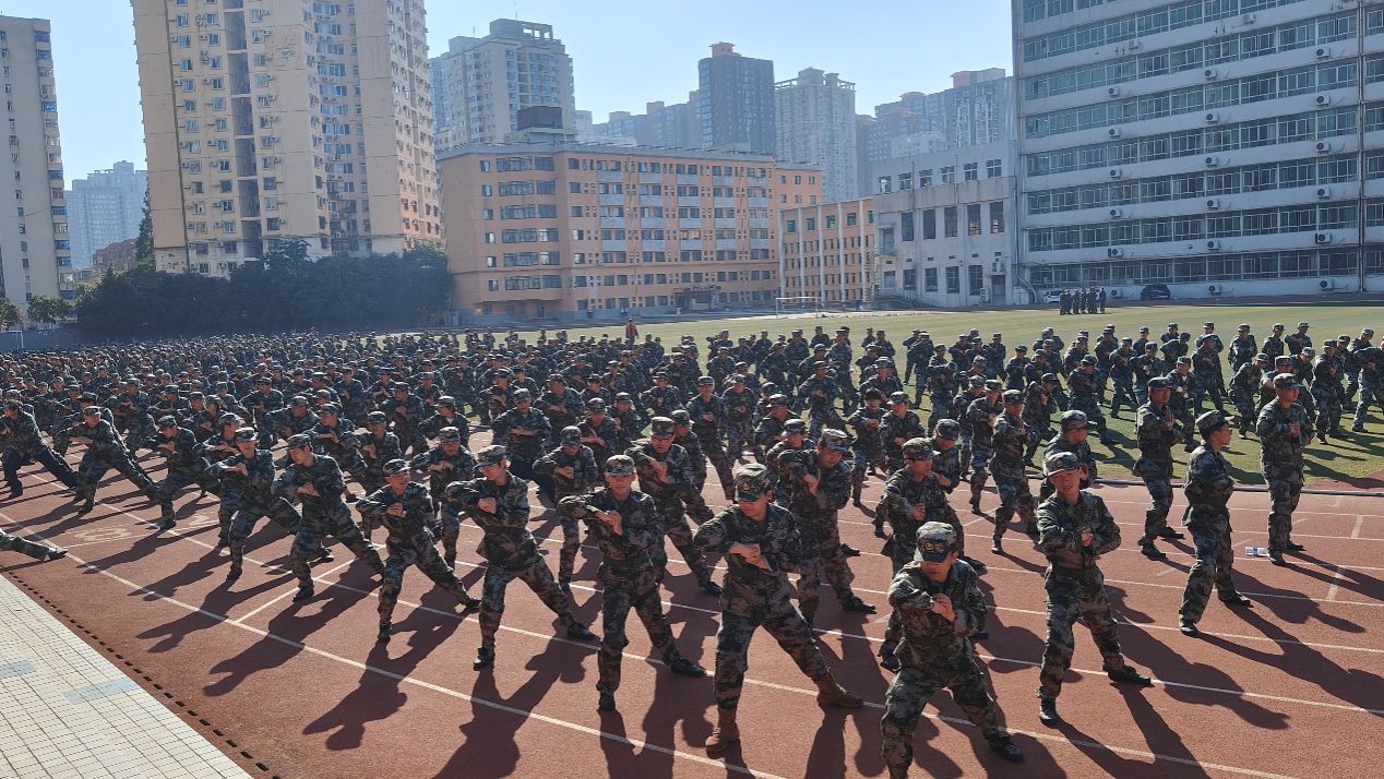 反复训练击垮不了坚韧的意志。经过一天的艰苦训练,同学们在教官的指导下动作越来越标准,越来越规范。