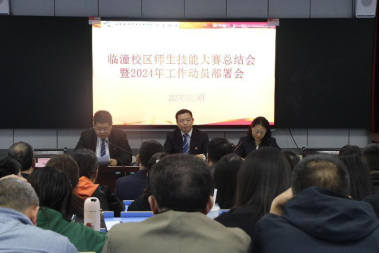 10月18日下午,临潼校区在实验楼五楼阶梯教室召开2023年师生技能大赛总结会暨2024年工作动员部署会。校区党总支书记兼主任张军、党总支副书记马荣、副主任冷鑫及全体在编教职工参加会议。会议由马荣主持。