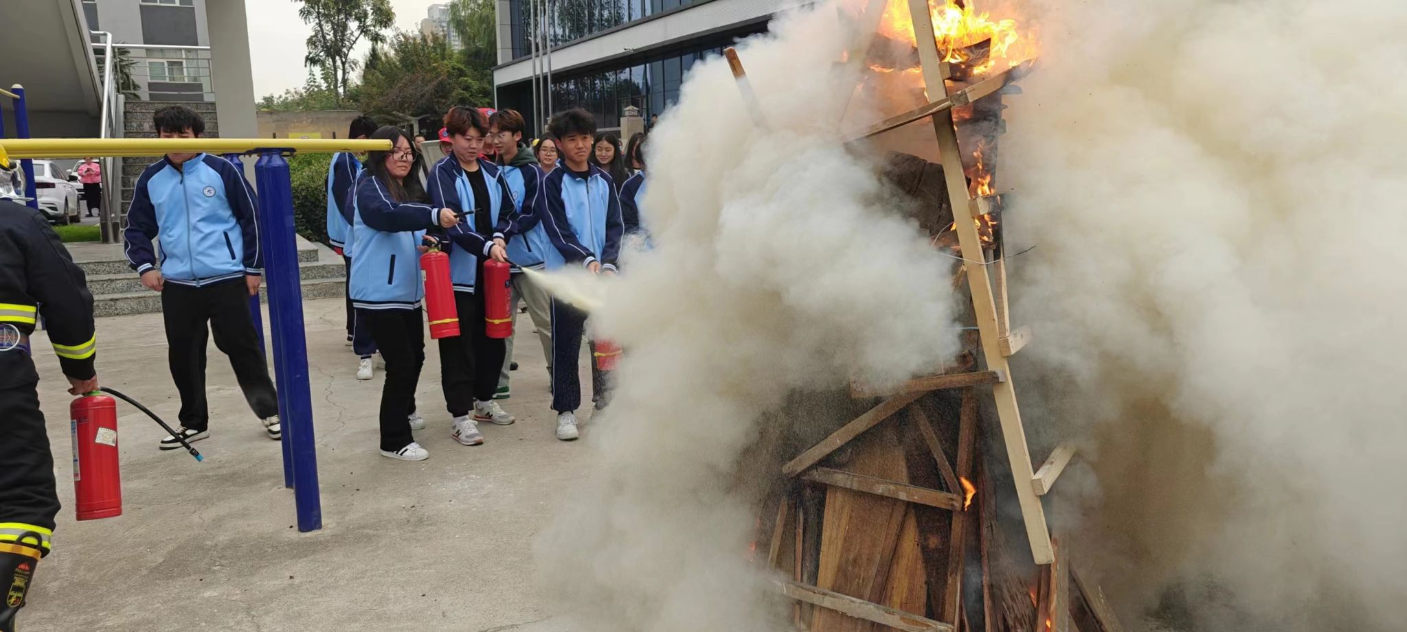 最后进行安保人员消火栓操作展示。由校区10名安保人员组成的消防小队,迅速穿戴消防服,规范打开消火栓,操作消防水带消灭火源。平时,校区尤其重视安保人员的教育培训和实操训练,全力打造一支本领扎实、反应迅速、能打胜仗的专业队伍,为维护校区稳定安全提供坚实人力保障。