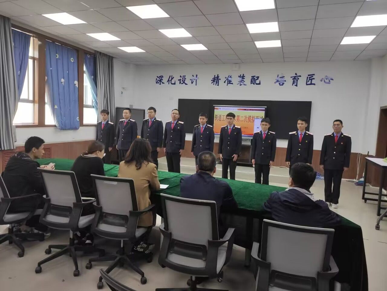 为全面提升学生综合面试能力,尽快适应真实的面试环境,校区组织经验丰富的专业教师、辅导员、班主任、礼仪队成员、退伍老兵组成的面试专班,利用自习、节假日时间从9月27日-10月31日对校区大三577名学生开展了两轮的真实场景模拟面试,在面试过程中,专班老师们分别从仪容姿态、临场应变、语言表达等多方面对学生进行全面指导,为学生答疑解惑,给出了宝贵的建议和指导。通过面试学生的语言表达、仪容仪表、心理素质、应变能力得到了很大提高,为后面企业的真面试打好了扎实的基础。