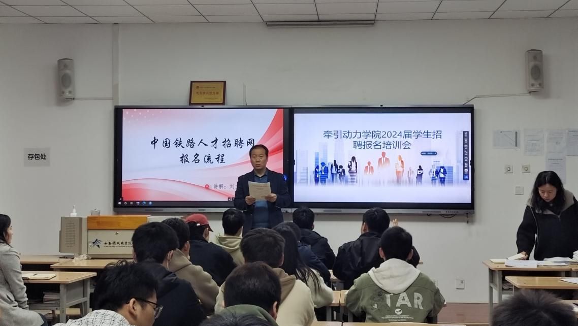 对于即将毕业的同学们来说,就业是一个非常重要的问题。它关系到我们的未来发展,也是我们实现自我价值的重要途径。学院高度重视毕业生的就业培训,于11月9日在牵引动力学院608教室面向各班班主任、班长以及就业联络员开展了“牵引动力学院2024届学生招聘报名培训会”。牵引动力学院学工办主任陈广勇老师、21级年级组长刘文峰老师、就业专项辅导员李茜老师为各位老师们和同学们作主要讲解。