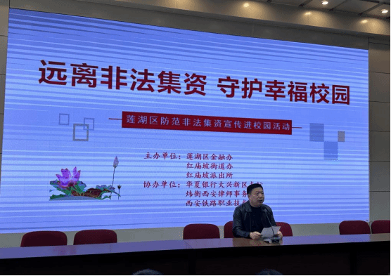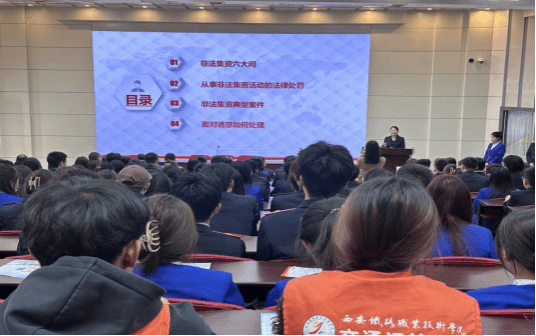 活动第二项由西安炜衡律师事务所雷春利律师进行防范和打击非法集资有关知识普及。她通过法律知识,以案释法、以法论事,讲解了非法集资的套路和防范等内容,引导师生树立正确的投资理财观念,拒绝高息引诱,自觉远离和抵制非法集资,守护好自己的“钱袋子”。