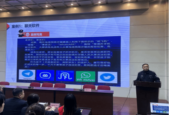活动第三项由刑警队工作人员李盼盼讲解反诈相关知识。他通过五花八门的诈骗手段、主要表现形式、识别方法等进行了宣传,帮助我们构筑了一道防骗墙。