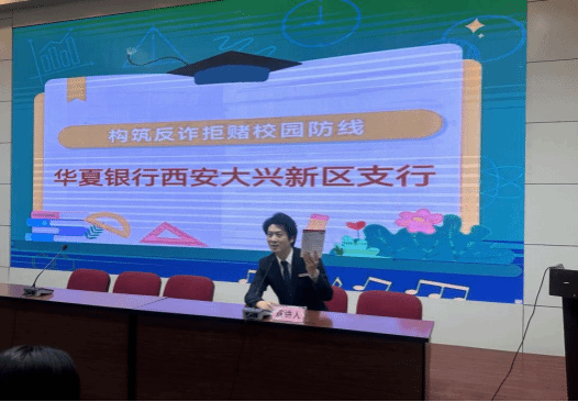 最后,现场设置了精彩的有奖问答环节,师生们热情满满,踊跃举手参与互动,答题完毕后,华夏银行工作人员为学生发放了礼品。