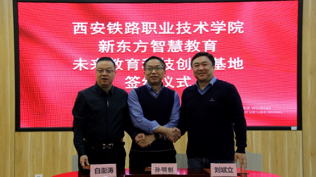 鸭脖校企合作处处长张治平、基础部主任孙明魁、综合管理处副处长刘林、基础部副主任张博雅,新东方教育事业部副总经理刘斌立,未来教育科技创新基地白澎涛等参加会议。
