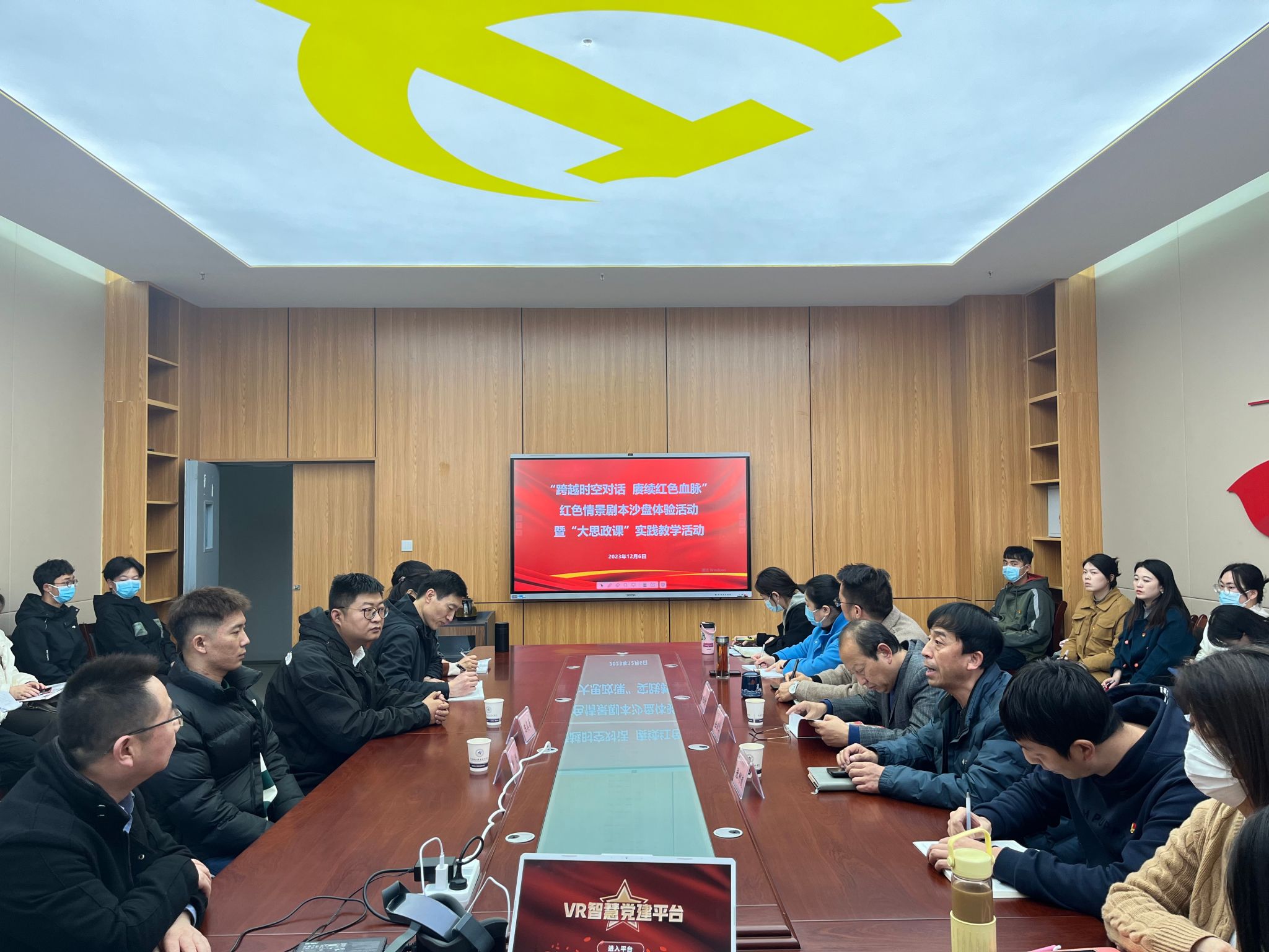 为深入学习贯彻党的二十大精神,全面贯彻习近平总书记在全国高校思想政治工作会议上的重要讲话精神,创新思政育人模式及“大思政课”实践教学新路径。12月6日下午,学院马克思主义学院联合中唐思政研究院开展了“跨越时空对话,赓续红色血脉”沉浸式红色情景剧本沙盘体验活动暨“大思政课”实践教学活动,把喜闻乐见的“剧本杀”搬进课堂,通过沉浸式体验走进革命英雄的精神世界。本次活动由中唐方德科技有限公司省区经理陈真源、沙盘讲师田野老师主持,马克思主义学院7位教师代表、国际交通学院铁道工程H2301班的7位同学参与了本次体验活动,部分专兼职教师及学生进行观摩学习。学院党委副书记任治军、马克思主义学院院长张刚毅、副院长邢卫红出席本次活动。