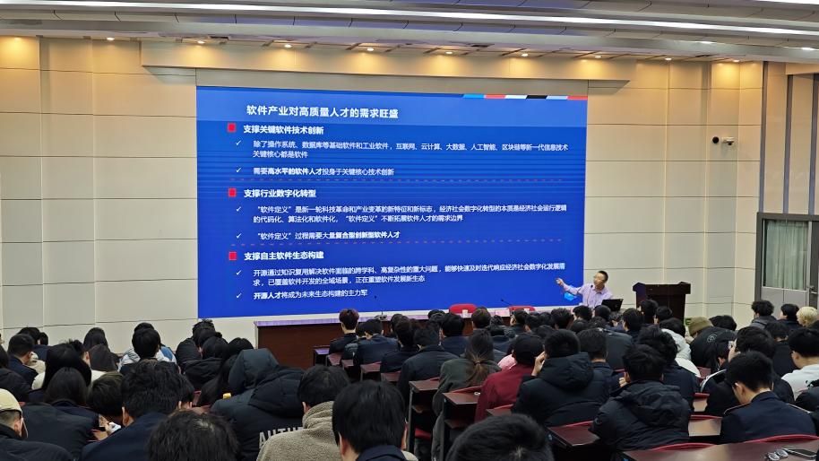 会上,殷建军以“智而获智·智达高远”为主题,对就业岗位与发展、软件开发语言、项目及开发流程,从事软件相关岗位的职业发展通道和薪资待遇等方面进行详解。强调要高度重视人才培养,全面推进产业化、规模化应用,重点突破关键软件,推动软件做大做强,提升关键软件技术创新和供给能力。新一代信息技术已然成为产业持续发展的核心支撑,产业高速的发展离不开掌握新技术的技术人才,了解行业知识,具备新技术应用能力、创新能力,才能成为数字产业发展的中间力量。