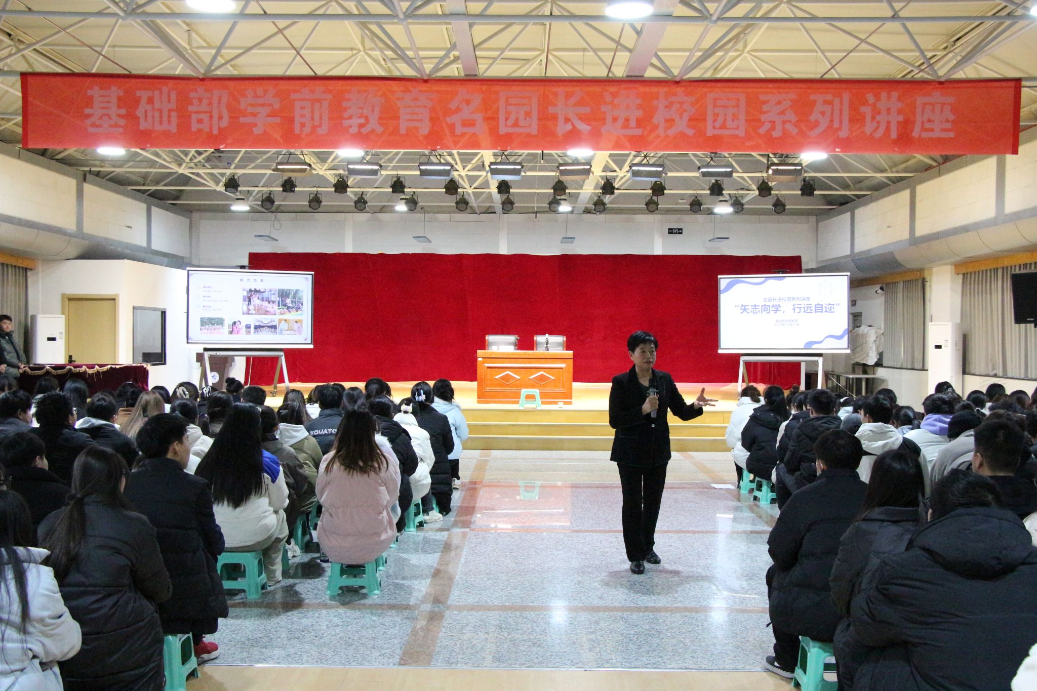 在活动中,米莹发表了主题为“矢志向学,行远自迩”的演讲,分享了自己的教育理念和实践经验,激励学生们坚定学习信念,不断追求进步和发展。她强调了爱、责任和初心的重要性,她指出,同学们要有大爱于天地,爱国、爱家、爱校、爱自己、爱孩子。她鼓励学生们要始终保持学习的热情和动力,履行好学前教育学子的责任,不断追求进步和发展,坚守幼儿教师的初心使命,为学前教育事业贡献自己的力量。