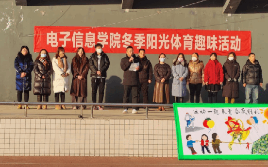 12月21日,电子信息学院举办冬季阳光体育趣味系列活动,学工办主任薛明、全体辅导员、班主任及大一、大二年级全体学生参加,活动由辅导员胡士亮主持。此次活动旨在丰富学生课余体育文化生活,全面提高学生身体素质,培养团队合作意识,展现学生健康活泼、积极向上的精神风貌。