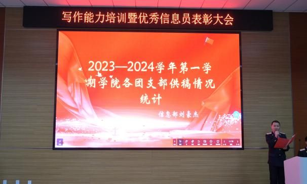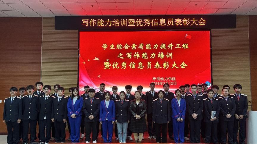 为进一步加强学生信息员队伍建设,强化学生综合素质能力,提升学生的写作能力,鼓励学生积极参与学校的信息工作,推动学院信息工作更好的发展,确保学院的宣传工作稳步提升。2024年3月13日鸭脖牵引动力学院在105阶梯教室组织举办学生综合素质能力提升工程之写作能力培训暨优秀信息员表彰大会,信息部负责老师杨若和各班学生代表约150余名学生参加本次会议。