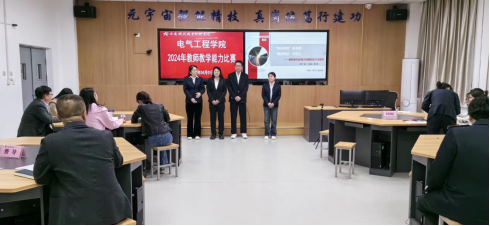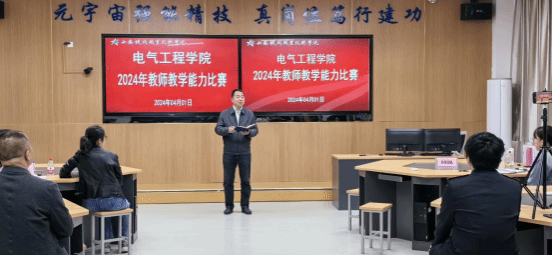 为推进学院高水平、结构化教师教学创新团队建设,促进“能说会做善导”的“双师型”教师成长,4月1日下午,电气工程学院在413教室举行了2024年教师教学能力比赛。学校副院长安学武、教务处副处长贠晓晴、教务处教学科长刘力郡现场督导,电气工程学院院长王公强、副院长宋永兴、赵先堃、葛雯、王锦三位老师担任评委,全院专任教师观摩学习。