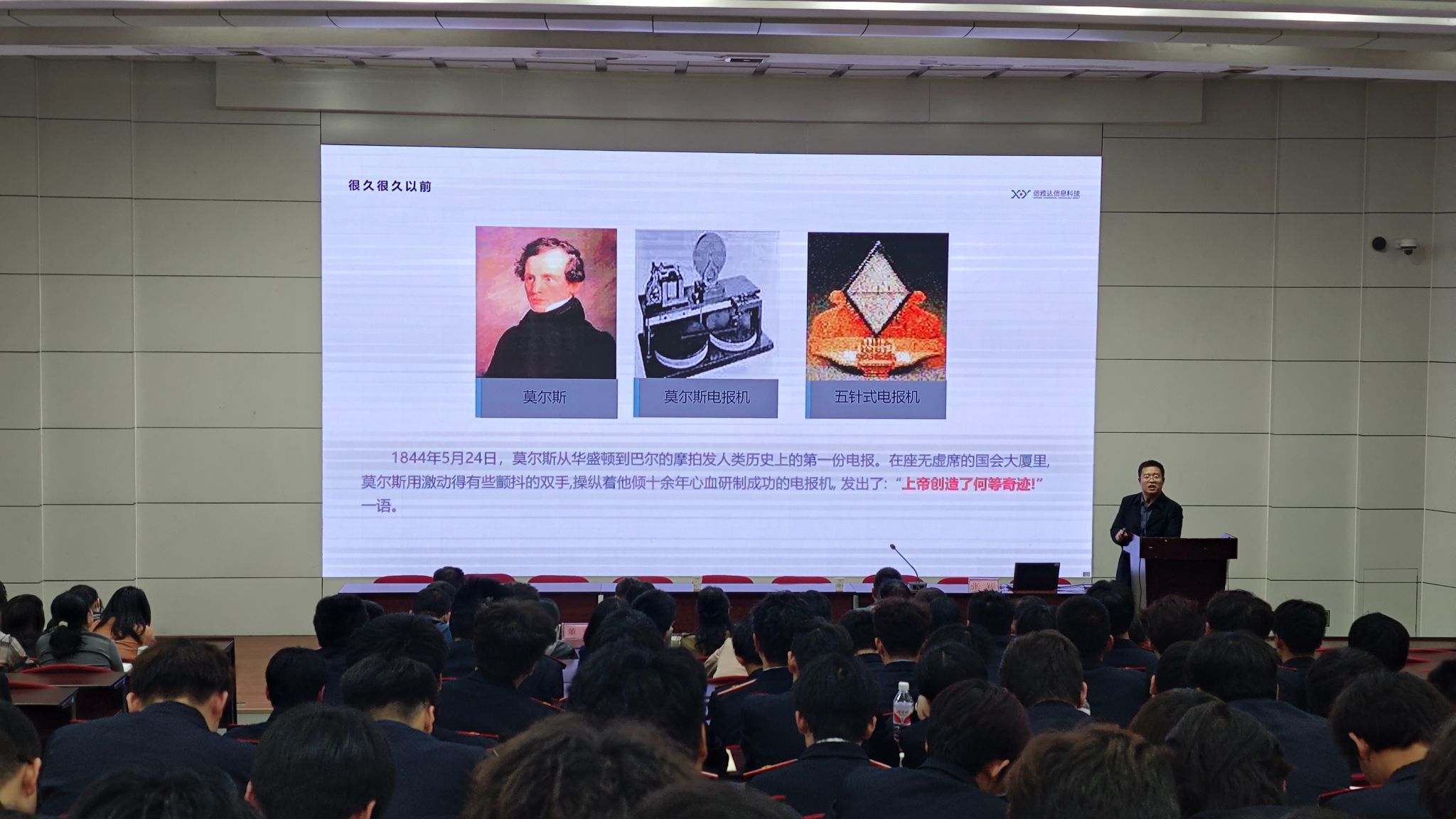 会上,张颖以“ICT行业秘史”为主题,按照信息通信技术从“过去”到“将来”的顺序,生动有趣的讲述“1G”到“5G”时代的演变过程,就数字孪生、元宇宙等做详细讲解,从案例切入,为同学们科普ICT行业在经历了数字化、信息化、正向智能化、智慧化演进后,在多个垂直行业领域里的显著优势。在中国,ICT技术的发展始于上世纪90年代,已成为数字经济中不可或缺的一部分,并获得国家政策的大力支持。希望同学们注重学习方法的培养,内外兼修,努力提升专业水平和能力素养,为国家ICT技术发展做出贡献。