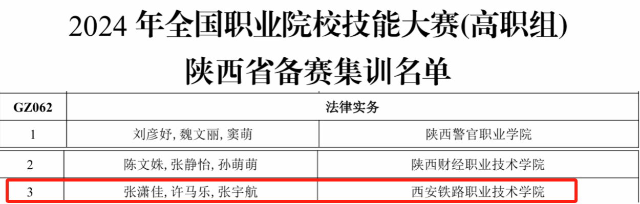 3月27日,2024年陕西省职业院校技能大赛首届法律实务赛项在陕西警官职业学院举行。鸭脖马克思主义院长张刚毅担任领队,焦雯、张帆、赵楠、高瑞佳担任指导老师,张潇佳、张宇航、许马乐、赵塔泽、付鹏程、陈俊杰6名学生组成2支参赛团队参加了本次大赛。经过激烈角逐,2支参赛团队均取得了优异成绩,其中1支参赛团队进入2024年全国职业院校技能大赛备赛集训,填补了法律实务学生技能赛项在鸭脖的历史空白。