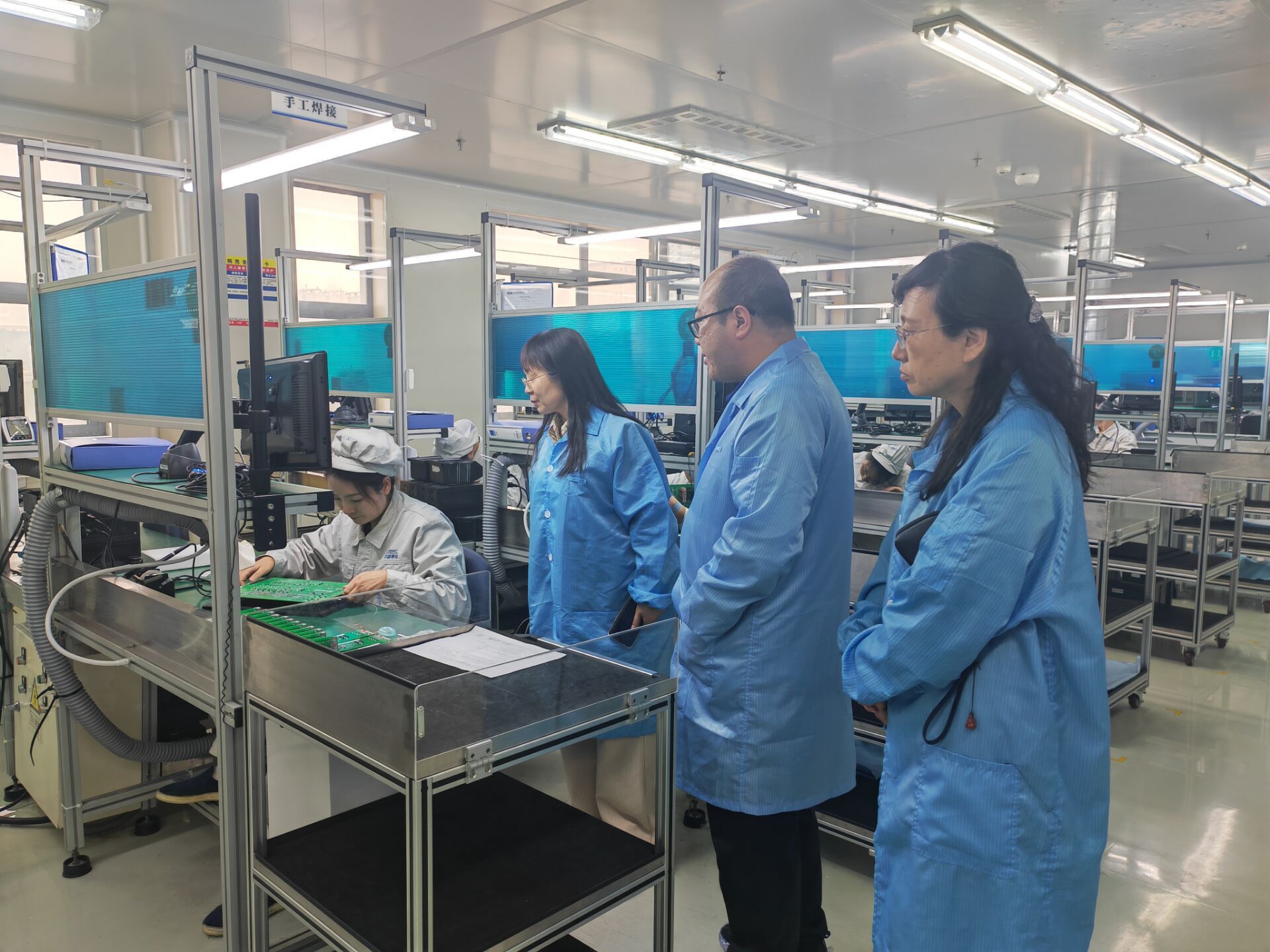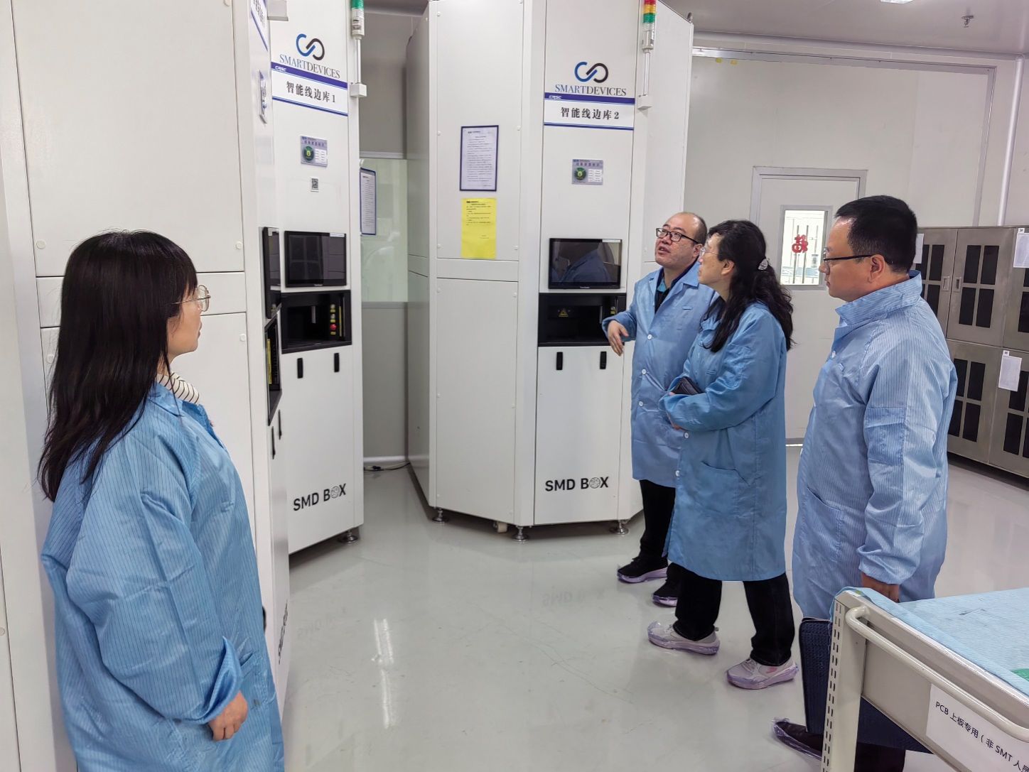 研讨结束后,彭正荣带领三位教师参观了电子车间物料存放、管理、芯片贴装、再流焊、波峰焊、AOI产品检验、PCBA板卡加工、冲洗、质检等生产过程,并重点介绍了各个生产环节的最新标准和先进工艺。