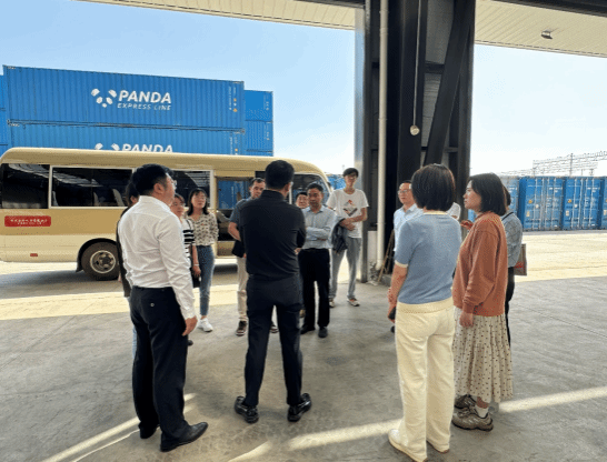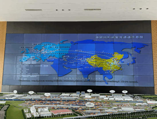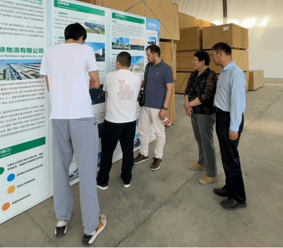 西安浐灞国际港管委会港口局干部高晓鹏对鸭脖人员到来表示热烈欢迎,通过观看国际港务区的宣传片和整体规划模拟沙盘,高晓鹏生动介绍中欧班列西安集结中心的功能分布和建设运营情况,尤其是中欧班列(长安)号的运营现状以及班列在推动陕西深度融入共建“一带一路”中的重要作用。教师们和留学生通过实地参观中铁联集西安中心站的布局,感受内陆港设立的重大意义以及中欧班列在联通中国与世界中的桥梁与纽带作用。