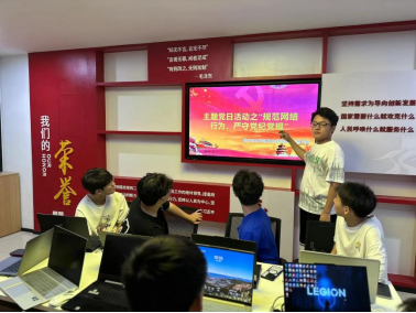 随后,学团模拟党支部成员宋鸿宇针对规范网络行为的重要性进行分析,他提到:“随着互联网技术的迅猛发展,网络已经成为人们获取信息、交流思想的重要平台。然而,网络空间也不乏一些不良信息和不规范行为。作为牵引学子,我们必须始终牢记自身的政治责任和使命,严守政治纪律,规范自己的网络行为。”