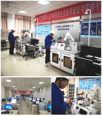 根据第三方评价组织要求和工作安排,鸭脖广泛宣传动员,择优选拔,利用课余时间对学生强化培训。变电一次安装、配电线路运维职业技能等级考试均由国家电网有限公司组织,分为理论考核、实操考核项目,国家电网安排督导员全程监督,鸭脖20名学生参加并获得职业技能等级认证(中级)证书。10名学生参加了南京地铁运营有限责任公司组织的城轨接触网(中级)职业技能等级考核,20名学生参加了由北京赛育达科教有限责任公司组织的工业机器人应用编程(初级)职业技能等级考核,均顺利通过。