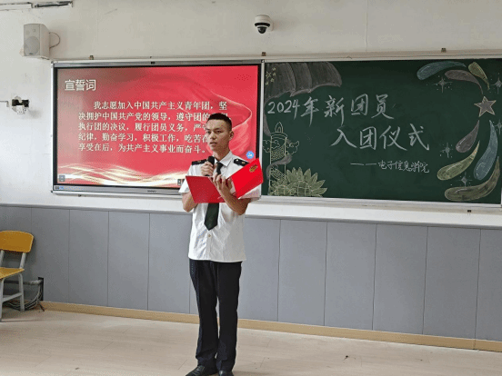 7月5日,电子信息学院在自强校区教学楼307举行了新团员入团仪式。电子信息学院团总支书记姚景妍及40名新老团员代表参加活动。
