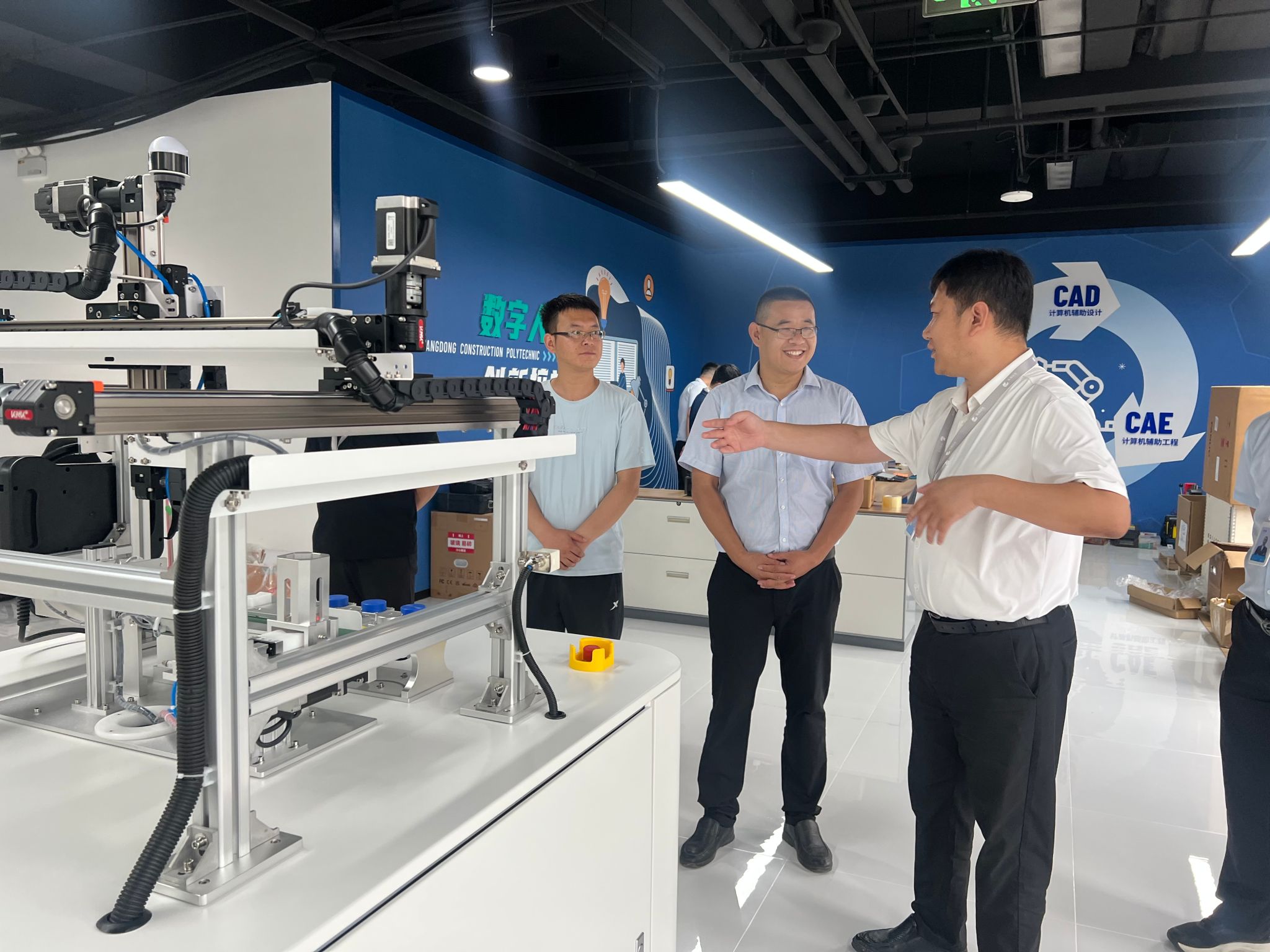 为深入贯彻落实学院开展《关于开展“新双高”专业群调研工作的通知》《关于进一步加强二级院部访企拓岗促就业工作的通知》文件的精神,切实推进制造业高质量发展,数字化转型升级工作,深化产教融合,不断提高育人质量,拓宽就业岗位,8月19日,机电工程学院智能制造教研室主任冯小庭和智能制造教研室教师李永琪赴北京华晟经世信息技术股份有限公司开展专业建设与访企拓岗调研,与北京华晟经视信息技术股份有限公司智能制造产品部部长张伟、教育服务总监冯波、技术支持经理张延龙在华晟经世集团开展关于智能制造产教融合创新基地项目座谈会。