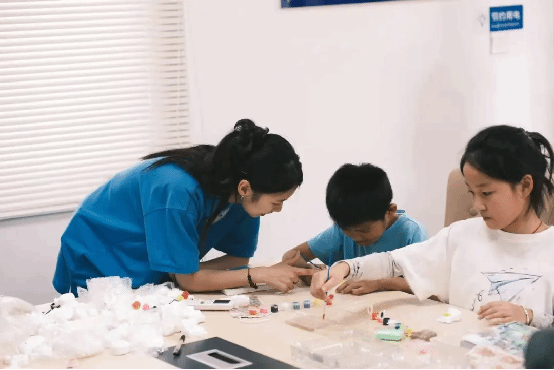 在温馨的氛围中,大学生志愿者们还引导孩子们开启了创意无限的手工涂绘DIY之旅。他们分发材料,耐心指导,让小朋友们充分发挥自己的想象力和创造力,用五彩斑斓的画笔勾勒出心中的梦想与希望。一件件精美的手工作品在孩子们的手中诞生,不仅展现了他们的艺术天赋,更增进了彼此之间的友谊与默契。