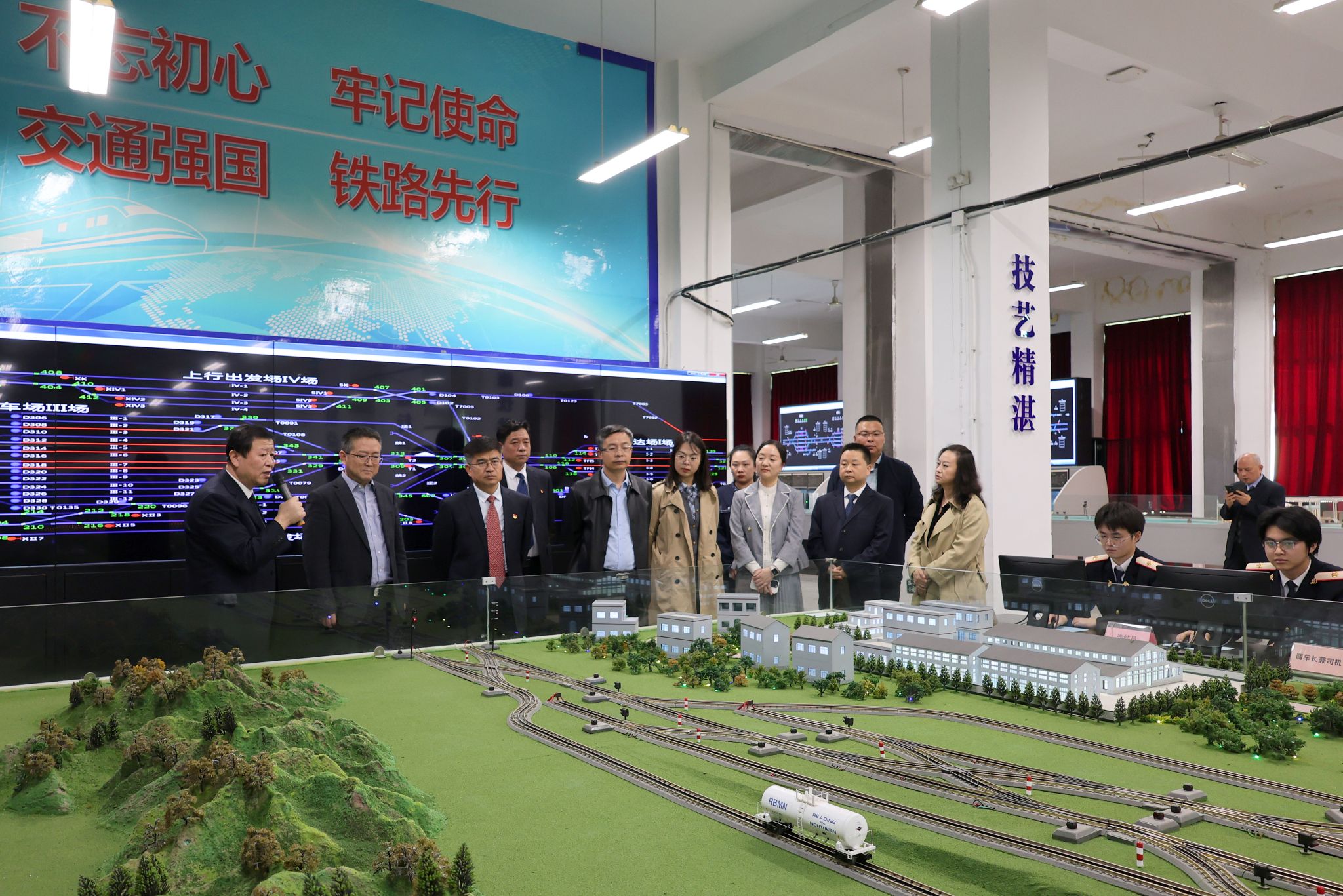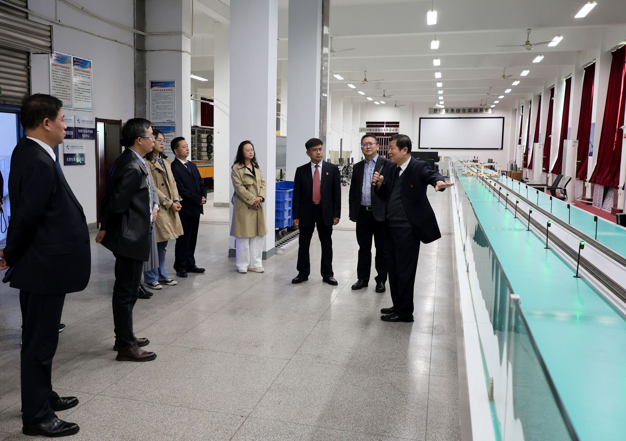 专家组首先实地查看了交通运输学院铁道运输综合演练场、接发列车实训中心、调度指挥实训中心等实训基地,了解掌握团队建设任务落实情况。