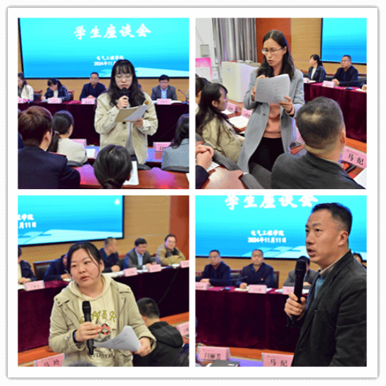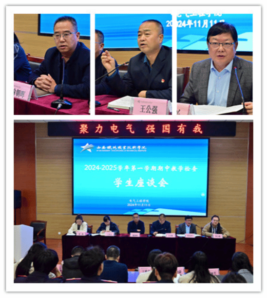 为深入了解学院教学运行情况,及时发现和解决教学中存在的问题,进一步规范教学管理,切实提高教学质量,电气工程学院于11月11日在教学楼101阶梯教室召开了2024-2025学年第一学期期中教学检查学生座谈会。院长王公强、党总支书记喻朝晖、发展规划处副处长丁洪芬、副院长宋永兴、教务处教学科科长刘力郡、院办主任董燕、学工办主任马纪、院办副主任闫丽芳、基础部和马克思主义学院教师代表、部分教学管理人员辅导员班主任及各教研室主任,与三个年级43个班级的学生代表参会交流,会议由院办主任董燕主持。
