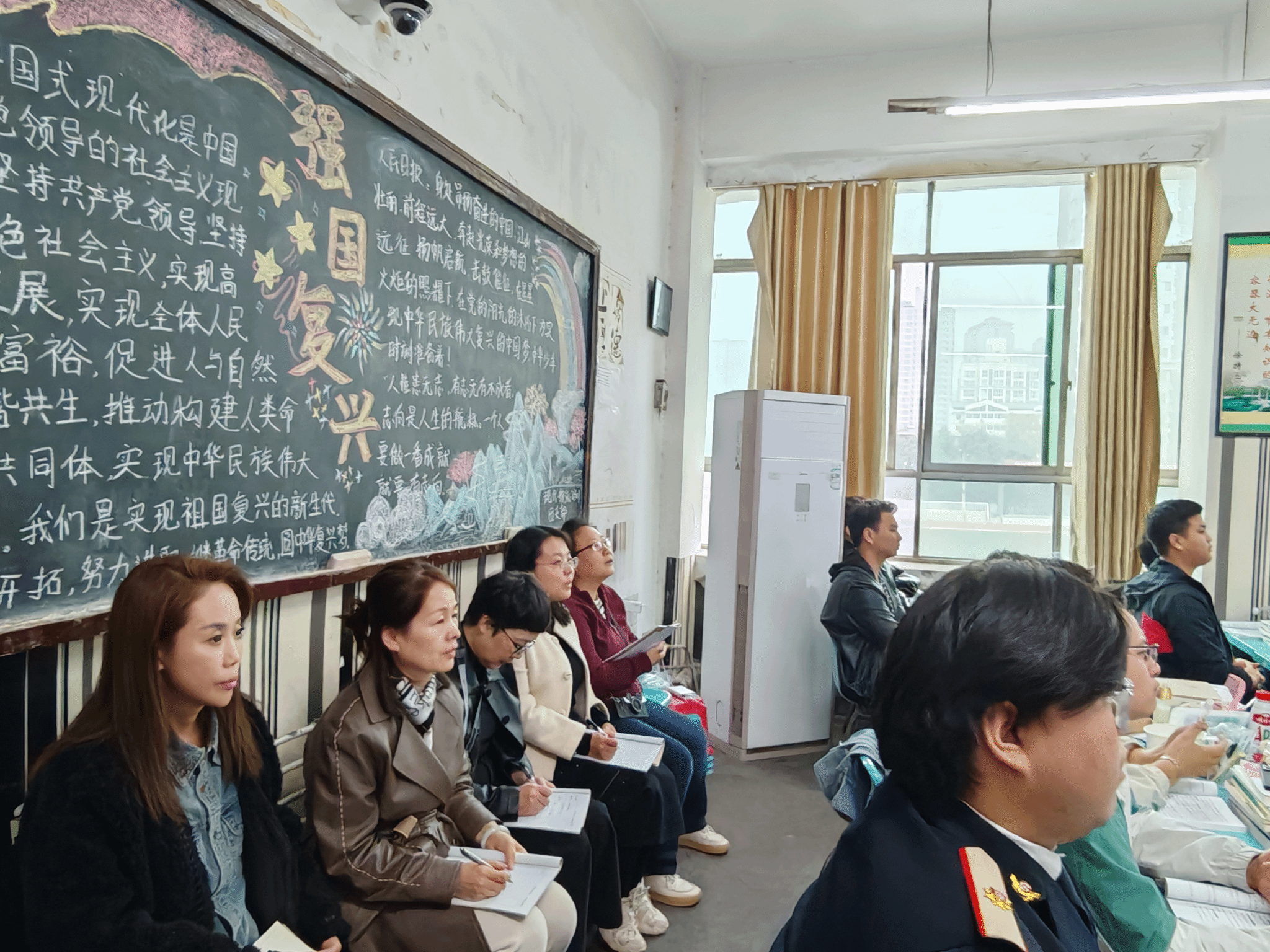 祁若溪老师课前备课充分,教学过程清晰流畅,重点突出,灵活运用多种方式突破难点,方法新颖独特。老师们认真听课,详细记录课堂教学情况。