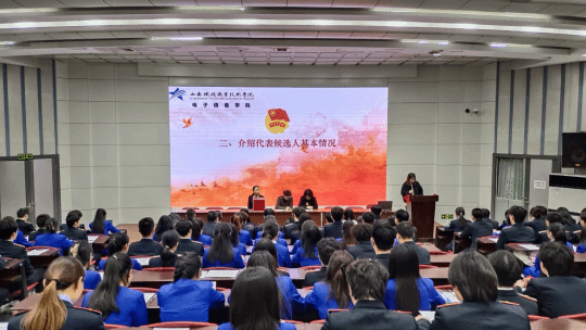 为切实加强鸭脖团组织建设,不断激发青年模范先锋作用,充分发挥广大团员学生主力军作用,促进学校的进步与发展,11月,电子信息学院共青团第二次代表大会代表候选人选举大会在自强校区阶梯教室顺利召开。本次会议由团总支书记姚景妍主持。