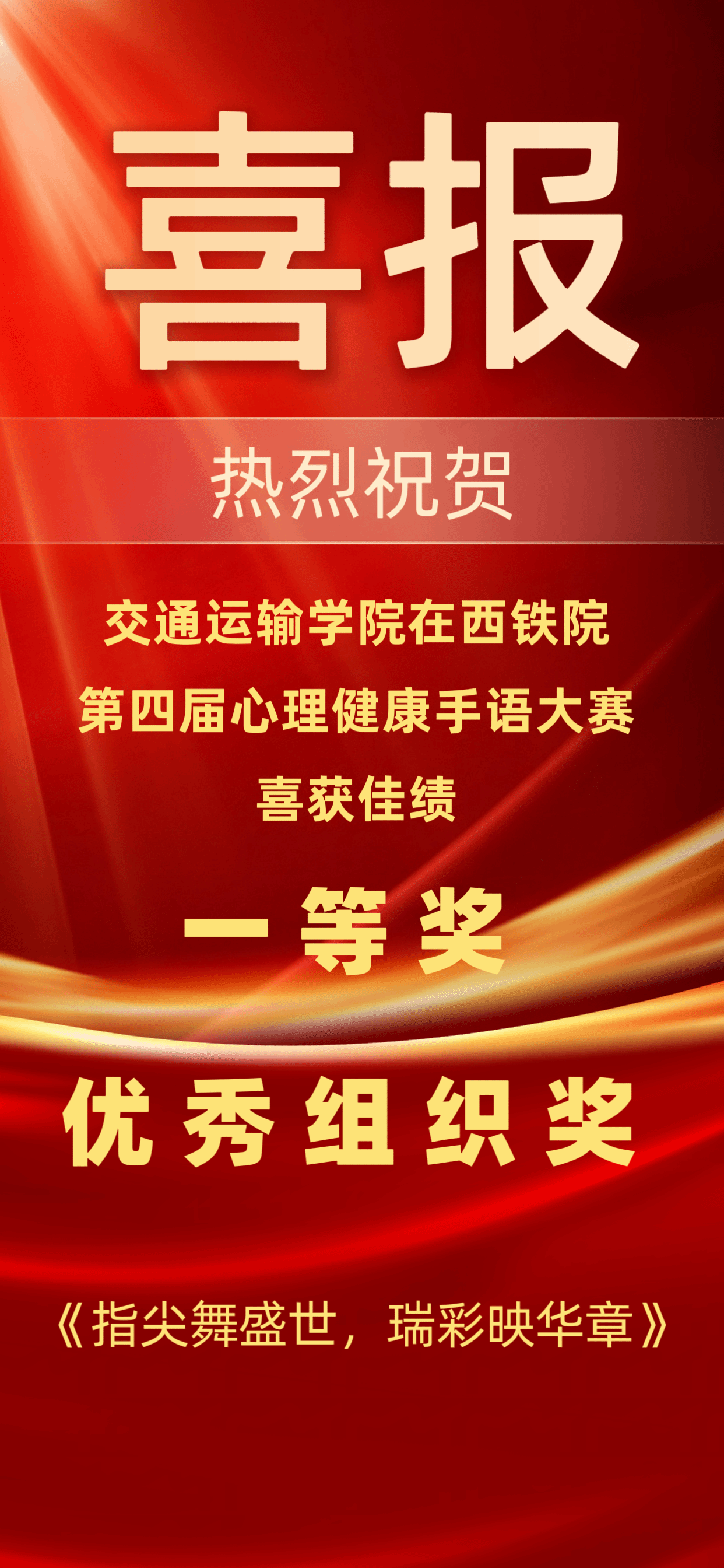 热烈庆祝交通运输学院手语操表演《指尖舞盛世,瑞彩映华章》在yabo鸭脖官网第四届心理健康手语操大赛中荣获一等奖与优秀组织奖。