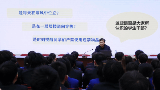 此外,吴西蒙还引述了党的二十大精神“为党育人、为国育才、全面提高人才自主培养质量”的重要战略任务。强调学生干部要秉持公正负责的工作态度,维护班级与同学的利益。同时充分发挥师生间的桥梁作用,积极倾听同学心声,及时反映意见诉求,为构建和谐校园贡献力量。