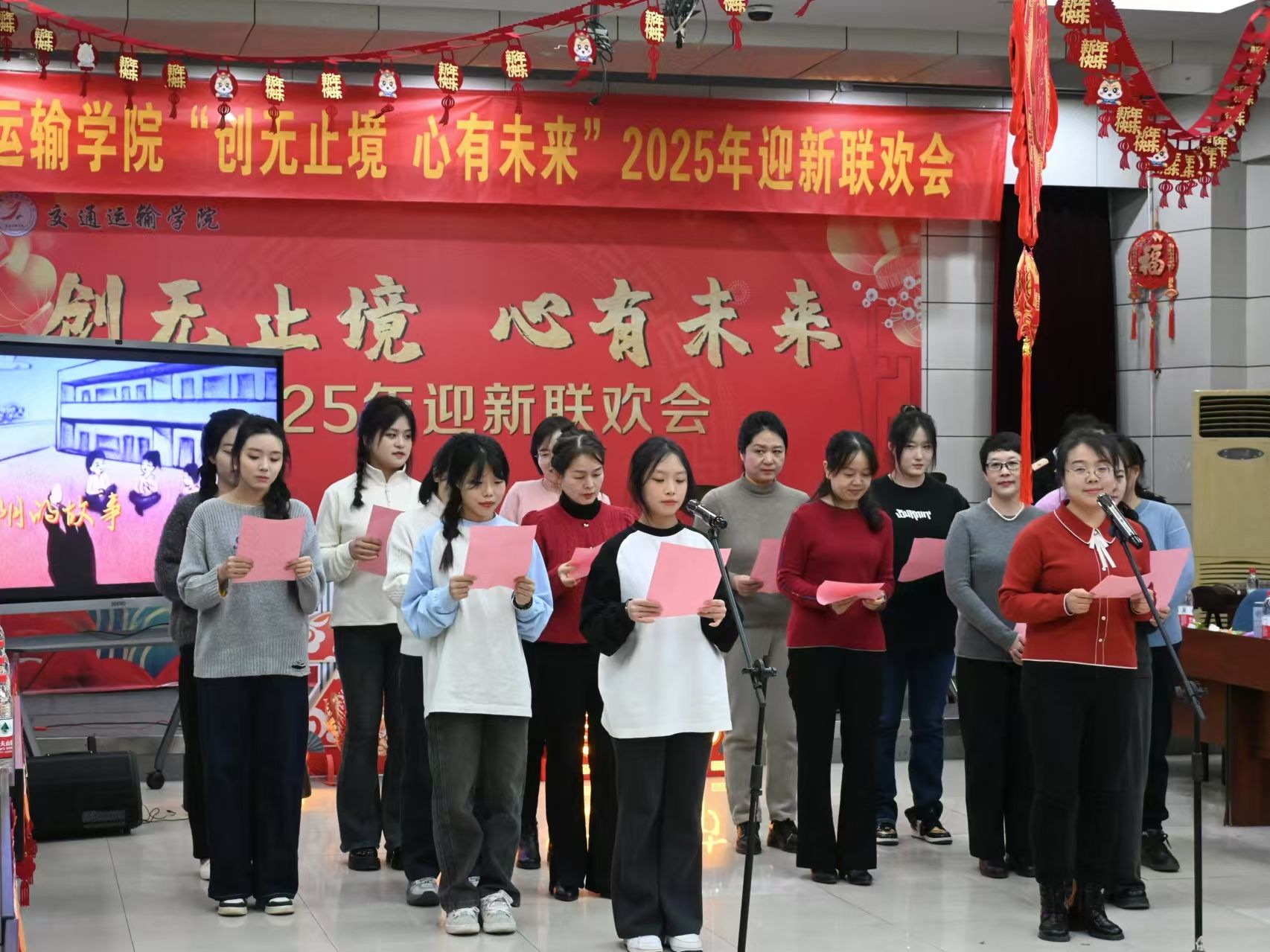 在这辞旧迎新的美好时刻,为加强教职工间的交流与互动,增强团队凝聚力,12月27日下午,交通运输学院在自强校区大电教举办了“创无止境,心有未来”2025年迎新联欢会。交通运输学院全体教职工及自强校区各部门代表参加了此次活动。