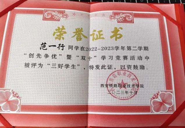 国家励志奖学金获得者范一行