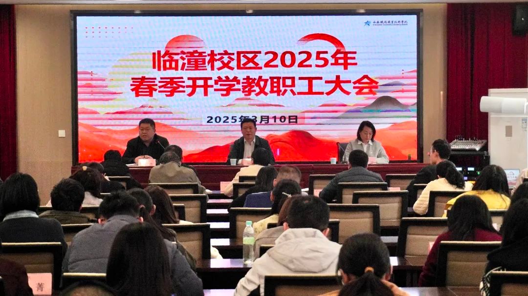 3月10日,临潼校区召开2025年春季开学教职工大会。校区党总支书记兼主任张军、副书记马荣、副主任冷鑫及全体教职工100余人参加会议。会议由马荣主持。