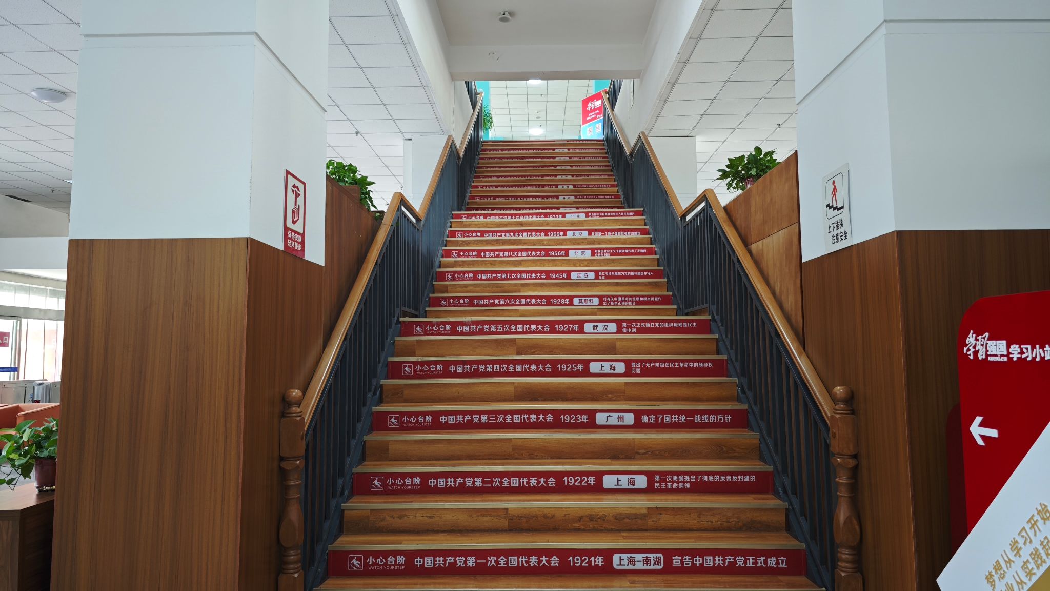 图书馆副馆长、学习强国管理员马建萍向各位嘉宾介绍了图书馆馆藏资源,并引导大家通往二楼的红色阶梯,红色阶梯用醒目的红底将中国共产党一大至二十大召开的时间、地点、历史意义标示出来,嘉宾们对图书馆充分将党史教育贯穿在文化育人的细微之处给予了高度评价。在“学习强国”学习小站,嘉宾们观看了思政课教师现场授课场景。随后,在图书馆一楼参观了传统文化阅读空间、廉洁文化阅读空间、AI智阅空间等特色空间等。