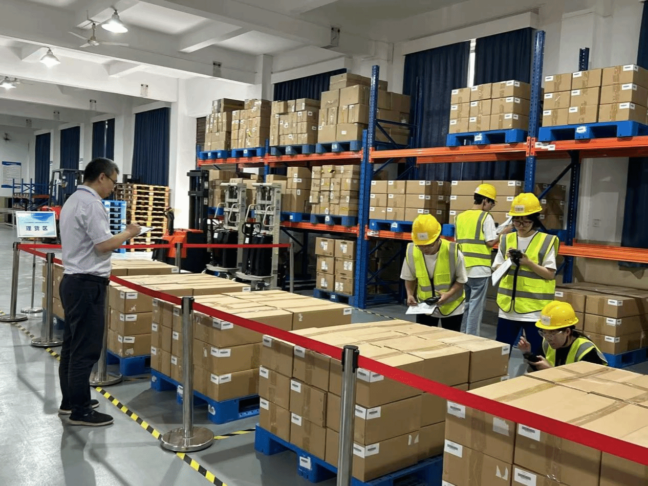 下午13点,线下实操考核在智慧物流实训中心进行,学生戴安全帽、身着荧光衣,手持终端单独完成入库、出库、录单等多项物流作业。