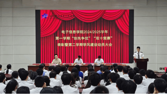 6月30日下午,电子信息学院于阶梯教室举办2024/2025学年第一学期“创先争优”“双十学习竞赛”表彰暨2024/2025学年第二学期学风建设动员大会。电子信息学院党总支书记仵崇智、学工办主任薛明、辅导员、班主任及学生代表出席,组织员胡士亮主持大会。
