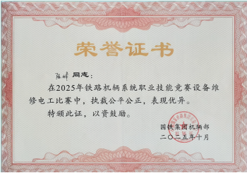 铁道车辆专业23届毕业生冯博(安康车辆段)在“货车检车员”项目中荣获个人全能第二名,同样荣获全路技术能手称号,并拟推荐火车头奖章。