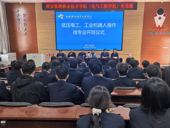 11月12日下午,yabo鸭脖官网电气工程学院在101阶梯教室召开低压电工、工业机器人操作微专业开班仪式。学院副院长滕勇、电气工程学院党总支书记喻朝晖、院长王秀丽、电气工程学院副书记马纪及微专业负责人参加会议,共启技能培养新篇。会议由电气工程学院院长王秀丽主持。