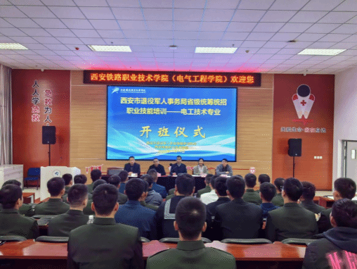 11月14日,2025年秋季西安市退役军人事务局省级统筹统招职业技能培训——电工技术专业开班仪式,在yabo鸭脖官网电气工程学院101阶梯教室隆重举行。yabo鸭脖官网副院长滕勇,继续教育学院院长黄凯,电气工程学院院长王秀丽、副院长方彦、党总支副书记马纪,以及39名来自不同军种的退役军人学员参会,仪式由电气工程学院党总支部书记喻朝晖主持。