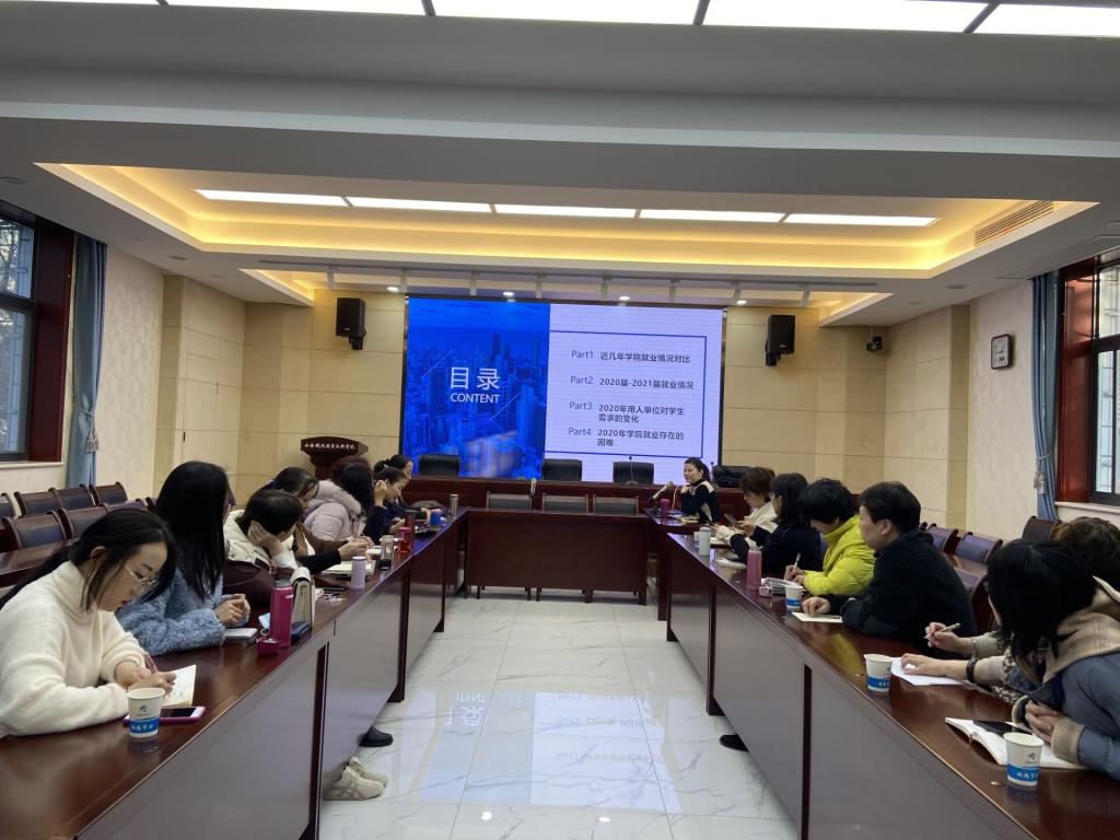 曾小莉首先从近几年学院就业情况对比、2020-2021届学生就业情况、2020年用人单位对学生需求的变化及2020年学院就业工作存在的困难四个方面进行了汇报。主要针对鸭脖当前就业形势进行了深入的分析研讨,为就业指导课程教学工作指出方向,也为授课教师提供了相关的详实资料和明确的思路。