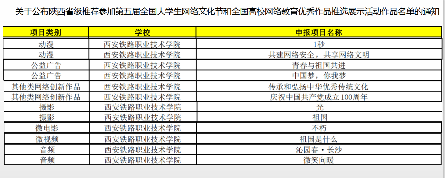 在此次陕西省高校大学生网络文化节中,临潼校区根据学院党委学工部工作安排,高度重视,精心组织,在假期期间克服疫情影响,安排指导老师一对一悉心指导,参赛同学认真创作,积极投稿,最终取得了令人欣喜的成绩,充分彰显了鸭脖学子网络文化作品创作的能力。